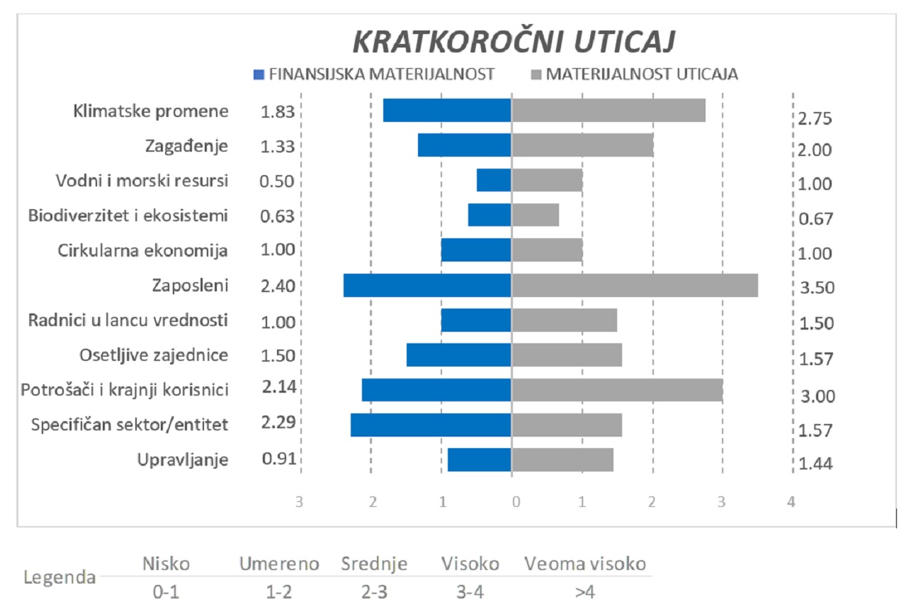 Materijalnost tema (odnosno njihov značaj) ocenjene su težinskim koeficijentima od 1 do 5.