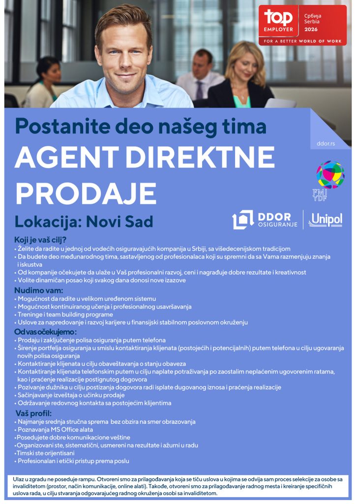 Tražimo osobu za poziciju: Agent direktne prodaje