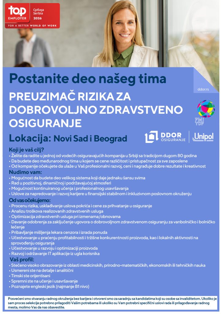 Tražimo osobu za poziciju: Preuzimač rizika za dobrovoljno zdravstveno osiguranje